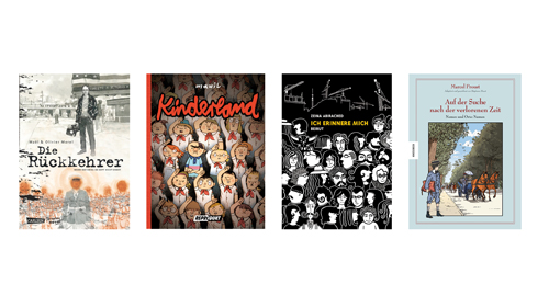 Ein Erlebnisbad außer Rand und Band: Einst war hier Weideland, jetzt umschließen riesige Glaskuppeln ein großes Badeparadies. Aber Marine Blandin erzählt mit „Eine nautische Fabel“ von den Abgründen einer solchen Wasserwelt, in der sich Untiefen auftun, Fabelwesen umherziehen und das soziale Gleichgewicht langsam außer Kontrolle gerät. Die als Funny gezeichnete Fabel entfaltet zunehmend düstere, aber auch poetische Momente (Carlsen). Ebenfalls fiktiv und auch mit tierischen Protagonisten besetzt ist „Rezzo und Elisabeth“ von Till Thomas. In stilisierten Zeichnungen erzählt er ein großes Drama von Liebe, Eifersucht, Macht und Gewalt. Unerbittlich lässt er seine Protagonisten ins Unglück laufen und nur die Stilisierung macht den ganzen Schlamassel erträglich (avant verlag). Toughe Typen: Ein klassischer Noir-Thriller ist „Parker – Das Syndikat“ von Darwyn Cooke. Es ist bereits Cookes zweite Adaption eines Richard-Stark-Krimis, die sich auch zeichnerisch vollkommen an den 60er Jahren, der Handlungszeit der Vorlage, orientiert (Eichborn). Mit „Namen und Orte: Namen“ wird der letzte der vier Teile von Stéphane Heuets Adaption von Marcel Prousts „Unterwegs zu Swann“ veröffentlicht. Nach den beiden Alben zu „Im Schatten junger Mädchenblüte“ liegen nun die ersten sechs Bände von Marcel Prousts sieben Bände umfassenden Hauptwerk „Auf der Suche nach der verlorenen Zeit“ als Comicadaption vor. Hier nun erinnert sich der Erzähler an eine erste Jugendliebe, die unerwidert blieb. Sentimental sinniert der Erzähler über die Hoffnungen des Verliebten und das Vergehen der Zeit. Heuet lässt Prousts Werke in wunderschönen Zeichnungen auferstehen (Knesebeck).