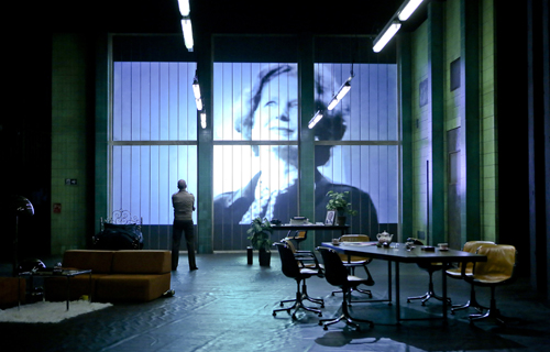 Am Theater Oberhausen hat Noch-Intendant Peter Carp diese Geschichte nun auf die Bühne gebracht. „GB84“ist ein spannender, halbdokumentarischer Politthriller, ein Roman von David Peace, die Theaterfassung von Stefanie Carp und es ist eine Welturaufführung. „Democracy will prevail“, die eiserne Lady im Video stößt das Zitat über ihre schmalen Lippen in die Welt, Krieg herrscht in England, das Verb „to prevail“ schon damals boshafter als „to win“, selbst als „to rule“. Die Tories wußten, was die Stunde geschlagen hatte – es ging um alles. Auch Carps Inszenierung nutzt das Halbdokumentarische. Viele Szenen werden von historischen Fernsehmitschnitten gerahmt, man spürt die Hoffnungslosigkeit beim Erzähler Martin (Thies Brammer), kein „working class hero“ , aber einer der armen Teufel, die am Ende immer ihren Kopf hinhalten müssen. Den 500-Seiten-Roman hat Stefanie Carp geschickt filetiert und die Restszenen zusammengeflochten, sodass der Flow die Geschichte, das Gefühl und die handelnden Personen nicht dividiert. Peter Carp choreografiert das Ganze mit seinem Ensemble in knapp drei Stunden über die Bühne. Mit heroischen Bergarbeiterflaggen, mit bösen Protagonisten auf beiden Seiten und dem immer stärker werdenden Gefühl im Publikum, das hier gewaltig was falsch gelaufen ist. Damals. Am Schluss wird die Bühne zur Metapher einer leeren Schwarzkaue.