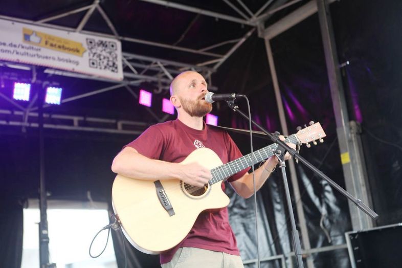 Mit Marko Jonas Jahn folgte der erste klassische Poet des Festivals. Jahn ist keine unbekannte Größe in der Poetry-Slam-Szene. Der Mittdreißiger aus Mönchengladbach war in der Vergangenheit nicht nur auf etlichen Bühnen der Republik zu Hause, er organisierte auch etliche Slams selbst. Mit nichts als einer Handvoll Zettel ausgestattet, feuerte der Slammer seine Wortsalven in Richtung Publikum, welches spätestens jetzt aus seiner frühabendlichen Siesta erwachte. Bei Gedichten über Dixi-Klos und Schildkrötengeburtstage horcht schließlich jeder auf. Und auch ins politische Gewissen wurde den Anwesenden indirekt geredet. In seinem Text über Standpunkte im Leben animierte Jahn zu Eigeninitiative im Alltag und erinnerte gleichzeitig an die oftmals schnell gemachten, aber nie erfüllten Vorsätze im Leben.
