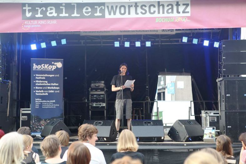 Auch am zweiten Tag wurde das Publikum bei Bochum Total vom Regen verschont. Erste Tropfen des Nachmittags waren laut Wetterbericht wohl nur Vorbote für Zukünftiges. Bleibt zu hoffen, dass sich die Wetterfrösche verrechnet haben und sich angekündigte Gewitter noch um ein paar Tage verschieben. Am Freitag hatte man zwar keine Sonne mehr, aber die Temperaturen waren trotzdem angenehm warm. Ideal für einen abwechslungsreichen Tag an Bochum Totals trailer-Wortschatzbühne.