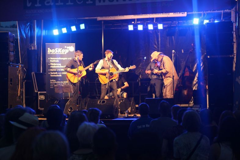 Als dann die Sonne verschwand und die Kegel der Scheinwerfer als einzige Lichtquelle auf den Bühnen dienten, bat die Rang Gang zum Tanz. Das Bochumer/Berliner Akustik-Quintett, u.a. mit Guntmar Feuerstein von Ape & Feuerstein an der Mandoline, bezeichnet seinen Stil selbst recht undurchsichtig als Mixtur aus Folk, Bluegrass, Blues, New Grass und Americana mit osteuropäischen Einflüssen. Kurz: „Europicana“.