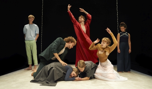Der rote Schwan streift durch sein Gehege. Luca Hennig tanzt das Wesen des jungen Herrschers fast unbekleidet in einem fließenden Umhang, das höfische Volk umkreist den Tempel, den schmale Lichtsäulen begrenzen. Und Hennig durchmisst dabei keine kurzen Wege, keine einfache Choreografie, keine einfache Verwandlung. Wie ein Schmetterling quetscht er sich aus der Enge seines Daseins, aus Erkenntnis des mit Zwang behafteten Scheiterns in die absolute Macht. Nur das Unmögliche bleibt noch erstrebenswert: der Mond in seiner Hand. Hennig beherrscht die tänzerischen Metaphern für solch einen Ausdruck, als Caligula ist ihm sein Körper längst fremd geworden, die Lust zur Qual, die Gedanken zur Last – und dann sind da noch die Wesen um ihn herum: Freund oder Feind, Geliebte oder Groupie, wer soll das an der Spitze einer Pyramide noch erkennen? Unten drücken sie und oben ist nur noch der Himmel – eine Heimat nur für Psychopathen, die temporär ihr Tun begreifen, aber schnell wieder an der Realität verzweifeln. Nielebock hat dafür intensive Bilder und Geschwindigkeiten gefunden. Zwischen Butoh-Ansätzen und rituellen Bewegungsmustern wechselt die Gruppe zwischen Ballett-Strukturen und Urban-Dance, zwischen Machtzentrum und Peripherie. Aber es wird keinen Ausweg geben. Der Mond wird sich vom freigelassenen Sklaven nicht zwingen lassen, der Staat muss sich befreien. „Noch lebe ich!“ muss der letzte Satz des Tyrannen bleiben.