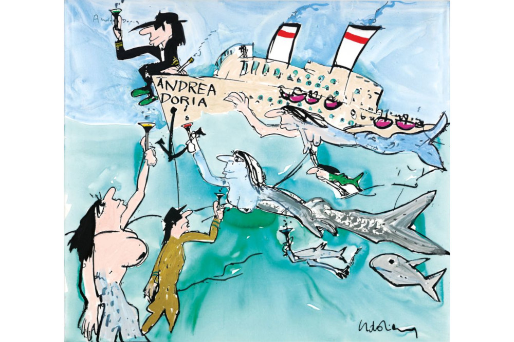 Andrea Doria I, 2002 © Udo Lindenberg ArchivWird die musikalische Bio im Kleinen Schloss auch tatsächlich musikalisch oder ist das eine Ausstellung der Plattencover?
