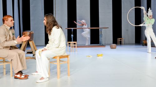 Eine altmodische Turnhalle ist am Theater an der Ruhr Welt genug für die Auseinandersetzung mit den Trieben, die in die Irre führen, wenn der Geist nicht stark genug ist. Da hilft auch kein Lamento oder eine rechtfertigende tiefenpsychologische Dauerargumentation im 1934 von Luigi Pirandello geschriebenen Stück „Non si sa come“ („Man weiß nicht wie“). Der Ehebruch von Romeo (Steffen Reuber) ist eine Untat, zumindest wenn man die Rechtspflege in Italien zu Zeiten des damals aufkeimenden Faschismus zu Grunde legt. Ist es aber tatsächlich ein Verbrechen, wenn die Triebe zum ungewollten Wollen verleiten? Roberto Ciulli hat Pirandellos Stück jedenfalls unter diesem Titel inszeniert und damit den italienischen Nobelpreisträger auch ein klein bisschen aus einer Vergessenheit befreit, die eigentlich unverständlich bleibt.