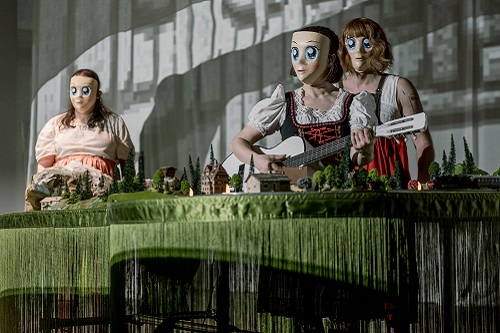 So abweisend bis aggressiv wird diese Figur des Alm-Öhi zwar auch in Johanna Spyris Buchvorlage charakterisiert. Doch der Theatergruppe KGI: Büro für nicht übertragbare Angelegenheiten geht es in ihrer Inszenierung von „Ur-Heidi. Eine Heim-Suchung“ im Ringlokschuppen vielmehr darum, den Stoff als Reibungsfläche der faschistischen Vergangenheit aufzugreifen.