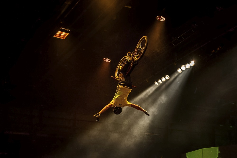 Denn direkt nebenan in Essen haben die Macher:innen um Regisseur und Kulturmanager Christian Eggert eine neue Heimat gefunden, wo Urbanatix in der Grugahalle vom 25. bis 31. Dezember insgesamt elf „X-Mas-Shows“ aufführt. Was das Publikum erwartet, kennt man aus der Ära in der Jahrhunderthalle: Da bretterten Radfahrer:innen durch Parcours, in denen sie waghalsige Stunts performten. Und Akteure aus der internationalen Artistik-Szene sorgten zugleich für schwindelerregende Showeinlagen – etwa beim Free Running oder Tricking. Denn in beiden jungen sowie urbanen Sportarten vollziehen die Artist:innen Salti, Schrauben oder Backflips, mit denen sie sich durch Parcours oder über Hindernisse wie Autowracks winden. Zum Markenzeichen von Urbanatix gehört ebenso, dass renommierte Street Artists coole Choreografien vollziehen, während in der Halle Hiphop-Livemusik wummert.