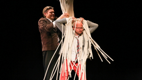Ein Huhn? Ja, ein Huhn. Wie sich das mit Clowns, hohen Absätzen, kurzen Kleidchen und nicht selten gefährlichen Performances vereinbaren lässt, zeigt seit dem 15. Januar das GOP Varieté-Theater in Essen. Das aktuelle Programm „Je t’aime – Eine Liebeserklärung!“ erzählt noch bis März die Leidensgeschichte der zwei männlichen Protagonisten im Liebeschaos. Liebeskummer wurde selten so fröhlich erzählt: Die acht Artistinnen und zwei Komödianten mit internationalem Hintergrund haben ein Programm mit viel Show und noch mehr Humor auf die Beine gestellt, bei dem die Geschichte nicht zu kurz kommt.