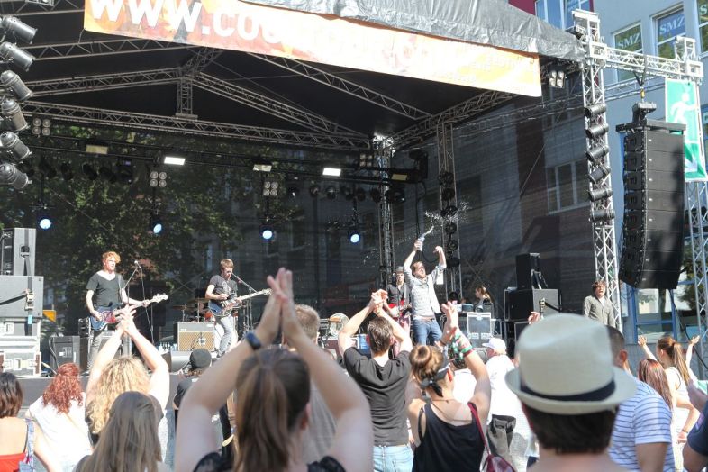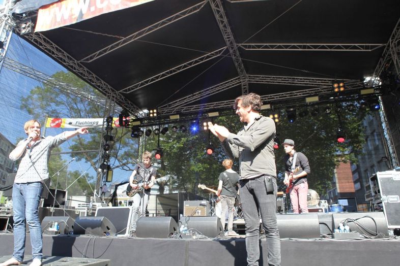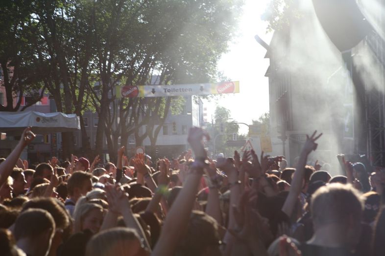 Rodrigo González von Die Ärzte ist eigentlich größere Bühnen gewohnt, doch wer den Bassisten der „besten Band der Welt“ kennt, weiß um die Liebe zu seinen etlichen Seitenprojekten. Eins davon ist die Band ¡Más Shake!, welche auf der Sparkasse-Bühne mit stilechter Beat-Musik überzeugte. Wem dies zu unspektakulär war, der wanderte anschließend in Richtung Susanne Blech, die mit ihrem Elektro-Pop die 1Live-Bühne auseinandernahmen. Ihre harten schnellen Beats und der schnörkellose Sprechgesang trafen den Nerv der Meute und sorgten für eine kollektive Party.