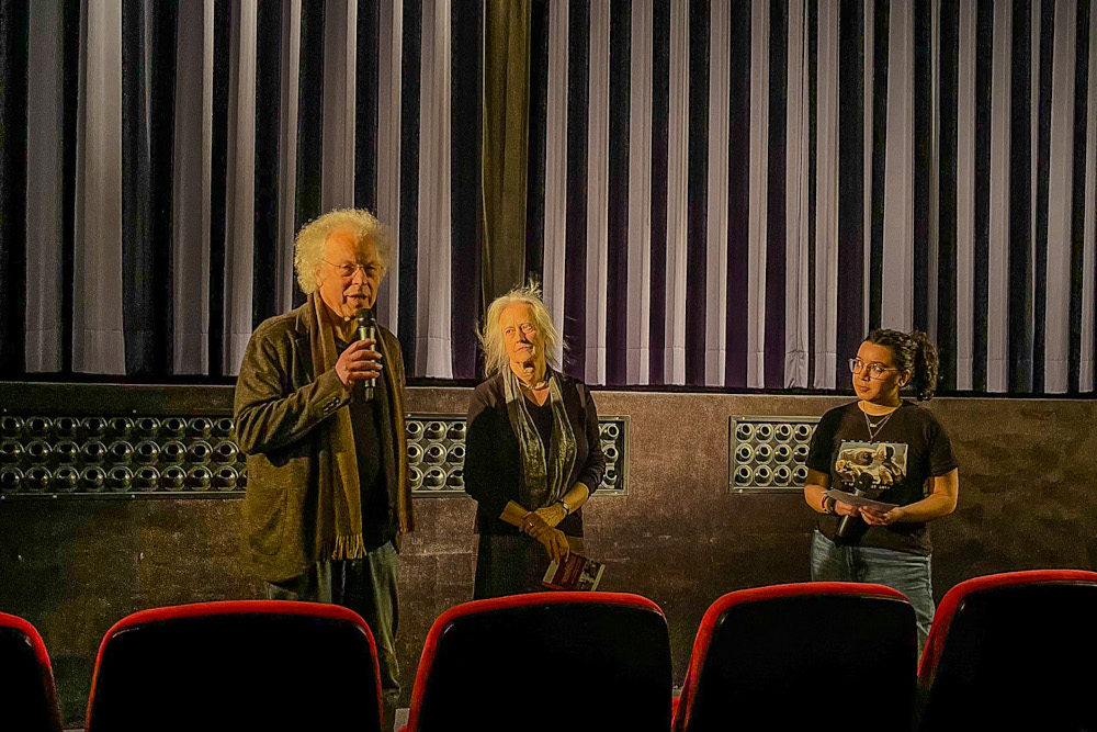 Das Regie-Duo Christoph Hübner und Gabriele Voss mit Moderatorin Jihad Azahrai