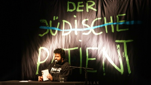 Bei „Der jüdische Patient“ handelt es sich nicht um ein tieftrauriges, freudloses Buch, denn trotz allem ist und bleibt Oliver Polak Comedian. Er kündigt einen nachdenklichen, nicht allzu komischen Abend an, lässt es sich jedoch nicht nehmen, den einen oder anderen Gag aus seinem neuen Programm „Krankes Schwein“ zum Besten zu geben. Mit gewohnt witziger Gelassenheit erzählt er Anekdoten der vergangenen Jahre, fast nichts erinnert an die schwierige Zeit, die er durchgemacht hat. Auf sein verändertes Aussehen kommt er selbst zu sprechen. „Ich habe Antidepressiva genommen – oder eher Anti-Antidepressiva. Ich habe zwanzig Kilo zugenommen. Und auch nicht wieder abgenommen, wie du siehst.“ Noch bevor er zu lesen beginnt, stellt er eine Frage in den Raum und lässt sie unbeantwortet: „Warum sind Depressionen in Deutschland tabu?“
