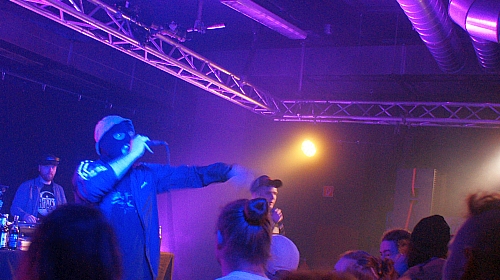 Dem Publikum im Druckluft werden solche hiphophistorischen Verweise vermutlich nicht aufgefallen sein: Wie zu erwarten finden sich hier weniger die klassischen HipHop-Fans als Punks, Frauen und Männer mit Rastas und ein verpeiltes, bunt bemaltes Pärchen, das aussieht, als seien sie seit der letzten Goa-Party hier geblieben. K.I.Z. und die Antilopen Gang versammeln ein ähnliches Publikum um sich, aber musikalisch haben sie mit klassischem HipHop, der nur zwei Turntables und ein Mic braucht, nicht mehr viel zu schaffen (is’ ja auch gut so). Waving the Guns lassen hingegen längst vergessen geglaubte Tugenden wie Acapella-Performances und Live-Scratches wieder aufleben. Abgesehen davon rappen Milli Dance und Admiral Adonis auch live verdammt gut – das ist selbst in der Profi-Liga alles andere als selbstverständlich. Schade, dass das an der HipHop-Szene fast vollkommen vorbeigeht, wenn endlich wieder getreten wird. Aber wahrscheinlich hat man da schon längst vergessen, wie das geht ...