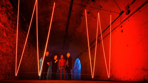 Wer einmal durch das Innere einer Glühlampe wandern möchte, der muss an diesen heißen Tagen nach Unna. In den kühlen Katakomben des Zentrums für Internationale Lichtkunst ist eine speziell für Unna zusammengestellte Retrospektive des niederländischen Licht-Künstlers Jan van Munster zu sehen. Für „L ich T“ hat der Magier der leuchtenden Neonröhren 15 Werke und Installationen aus seinem mehr als 50 Jahre andauernden Künstlerdasein zusammengestellt. Dabei ist er in Unna kein Unbekannter.