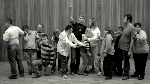 Seit über 14 Jahren gibt es das Ensemble der Lebenshilfe Duisburg und mindestens zweimal im Jahr stehen die Darsteller mit Behinderung vor Publikum. So wie hier auf der Rü-Bühne beim vierten Integrativen Musik- und Theaterfestival „Inclusiv“. Gespielt wird unter anderem das Stück „Wie im Himmel“ nach dem gleichnamigen Film von Kay Pollak.