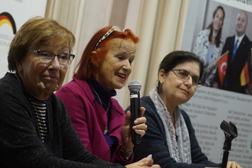 Wie schwer das Leben an der Seite türkischer Bergleute sein konnte, erlebte auch Gabi Kanag. 1964 lernte sie Zeki kennen, einen Lehrling, der aus der Türkei kam. Was dann passierte, war in den frühen, rigiden 60er-Jahren unter Bundeskanzler Ludwig Erhard keine Selbstverständlichkeit: eine Liaison zwischen einer Tochter aus einem Bergarbeiterhaus und einem türkischen Gastarbeiter. „Es war klar, dass die Familie davon nicht begeistert war“, erinnert sich Gabi Kanag. Das traf auch auf Zekis Familie in der Türkei zu. Doch 1969 reisten beide in die Türkei. Drei Tage waren sie mit dem Auto unterwegs, um dort eine gemeinsame Zeit im vollen Familienhaus zu verbringen. 1971 folgte ihre Hochzeit. Und spätestes als ihre Kinder unterwegs waren, akzeptierten auch beiden Familien ihren gemeinsamen Lebensweg, so Gabi Kanag an diesem Abend: „Wir haben uns durchgesetzt und heute sind wir über 50 Jahre verheiratet.“
