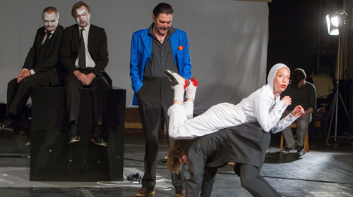 Thomas Krupa: Wir haben auch über digitale Welten gesprochen. Interessant ist erst einmal, dass Shakespeare damals selbst einen Zeitenwandel mitgemacht und sich dabei selbst komplett in Frage gestellt hat. Wenn wir das auf heute beziehen ist das wie der Sprung von der analogen zur digitalen Welt. Mit all den Überforderungen, in denen wir auch drin stecken. Diese Art der Digitalisierung, die der Prospero als Theaterexperiment macht – das ganze Stück ist ja von Shakespeare in Realzeit geschrieben – man vergisst oft, dass es um 14 Uhr beginnt und um 17 Uhr endet. In dieser Zeit klappt er diesen Kopf auf und dieses Gehirn produziert permanente Überforderung. Das ist ein Ansatz. Politisch gesehen ist das natürlich auch eine postkoloniale Studie, die Shakespeare da vorlegt. Das ist sehr interessant, zu sehen, was so ein Caliban sagt, wenn man ihn mal nicht reduziert auf so ein Ungeheuer, sondern auf jemanden, der einen politischen Anspruch hat und der auch warten kann, bis er irgendwann losschlägt. Und wenn man diesen White Trash, diese Kolonisatoren sieht, die an der langen Leine von Prospero über die Insel gejagt werden, auch dann ist man ganz schnell im Hier und Jetzt.