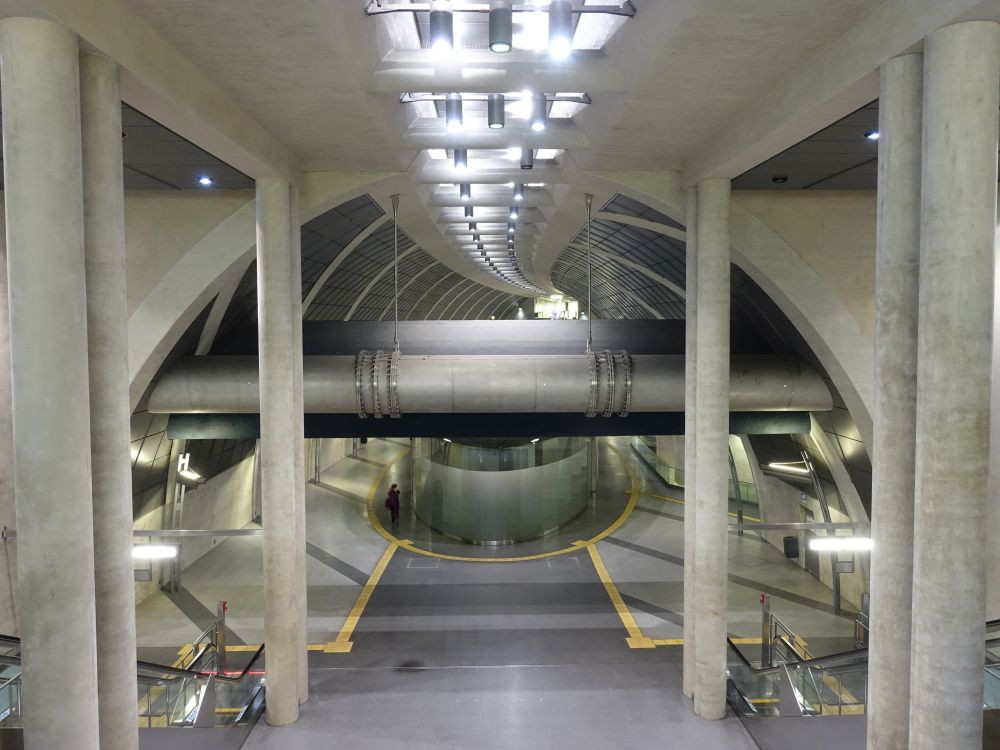 Am Gleis angekommen schlägt mir die gähnende Leere des U-Bahn-Schachts entgegen. Niemand wartet auf verspätete Bahnen, niemand tapst rastlos telefonierend knapp hinter der weißen Sicherheitslinie entlang, niemand sitzt auf den in die Wand eingelassenen grünen Metallklappstühlen und starrt gelangweilt aufs Handy. Und niemand hängt horizontal in trunkenem Schlaf in einer kaltgefliesten Ecke. Nicht ein einziger Mensch an diesem unterirdischen Ort, der doch dafür entworfen wurde, Menschen auszuspucken, ankommen zu lassen oder von hier fort zu transportieren. Der ohne Menschen plötzlich so zweckbefreit, so trostlos, so entfremdet wirkt.