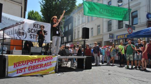 „Vielleicht haben wir die Besucherzahl aus dem Vorjahr am gestrigen Tag sogar leicht übertroffen“, mutmaßte Nicola von Jenisch, Pressesprecherin vom Schauspiel Köln. Das Schauspiel Köln ist nur einer von vielen Mitveranstaltern des Birlikte-Festivals. Gemeinsam mit der IG Keupstraße, der Stadt Köln, dem Bündnis „Arsch huh, Zäng ussenander“ und weiteren Partnern hatte man mit dem Birlikte-Festival im vergangenen Jahr bereits ein Zeichen gegen Rassismus gesetzt. 2014 jährte sich der Nagelbombenanschlag des NSU in der Keupstraße zum zehnten Mal. Anlässlich des traurigen Jubiläums sollte bewusst fröhlich gefeiert und so für ein friedliches Miteinander demonstriert werden. Neben dem Gedenken wurde 2015 noch ein weiterer Aspekt in die Agenda des Festivals aufgenommen. „Auch wegen aktueller Tendenzen wie Kögida und Pegida haben wir das Thema Flüchtlinge miteinbezogen. Nicht zuletzt aber auch wegen der generellen verheerenden Flüchtlingspolitik der vergangenen Jahre“, beschrieb es von Jenisch.