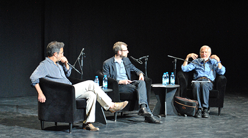 Im Depot 2 verwickelte der Journalist Joachim Frank (KStA) den Schriftsteller Navid Kermani und den Cap-Anamur-Mitbegründer Rupert Neudeck in einen lebhaften und leidenschaftlichen Dialog über die Flüchtlingsthematik. Vorher führten drei Schauspieler des Ensembles vom Schauspiel Köln einen Auszug aus dem dokumentarischen Stück „Asylmonologe“ auf, das Interviews mit Menschen verarbeitet, die als „illegale Einwanderer“ gelten.